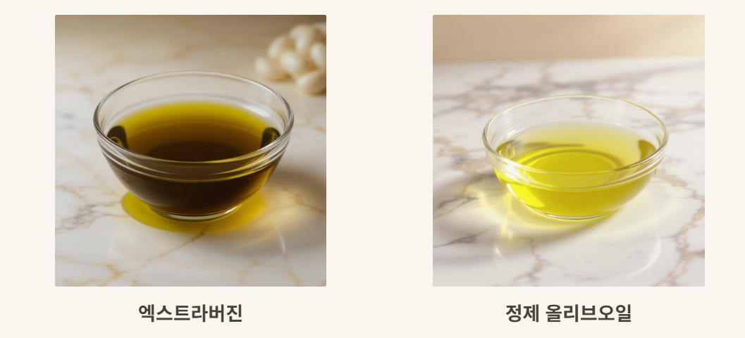| ๊ตฌ๋ถ | ์์คํธ๋ผ๋ฒ์ง (Extra Virgin) | ์ผ๋ฐ(์ ์ ) ์ฌ๋ฆฌ๋ธ์ค์ผ (Pure/Light) |
